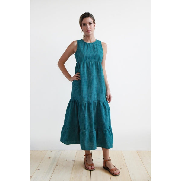 • Carica l'immagine nel visualizzatore di Gallery, ABITO LUNGO ELICRISO COTONE SEERSUCKER SCACCHI