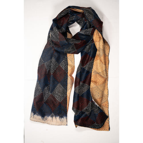 STOLA SARI SETA RICICLATA RICAMO ROMBI