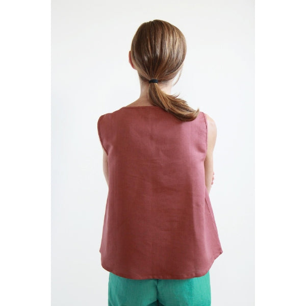 TOP MUGHETTO LINO-COTONE TERRACOTTA